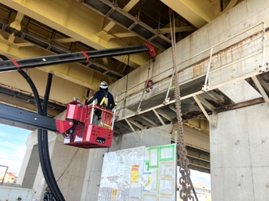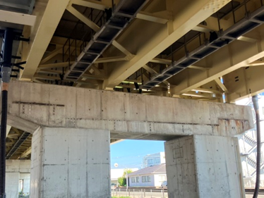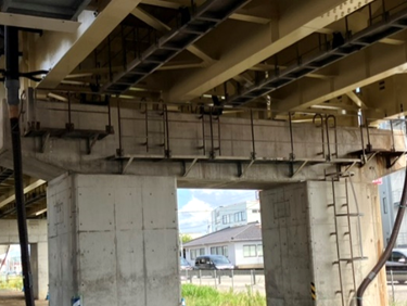 一時撤去した検査路は、状況によっては再利用して取り付け直す場合もありますが、補強工事後に橋脚の形状が変わる場合は、新品の検査路を設置することもあります。