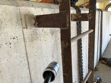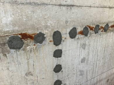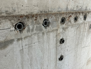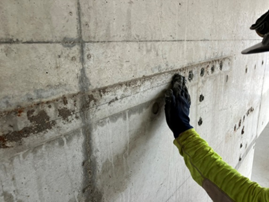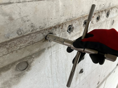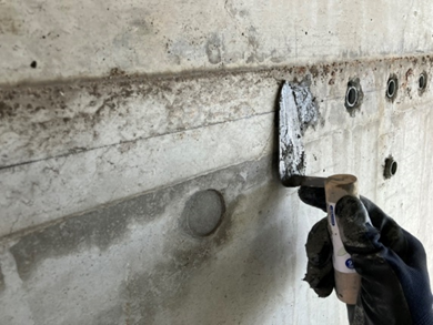 検査路を支える支持材(ブラケット)を固定していたボルトを外した後、カットアンカー本体を抜き、モルタル(簡易セメント)で穴を補修しました。