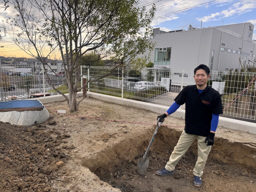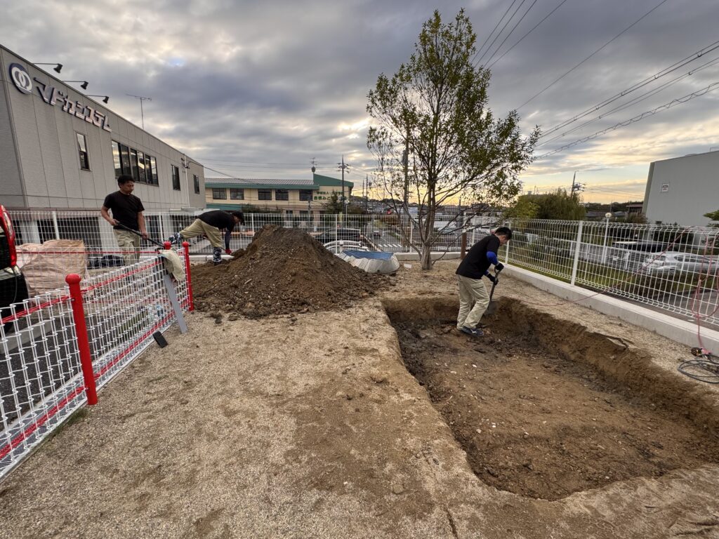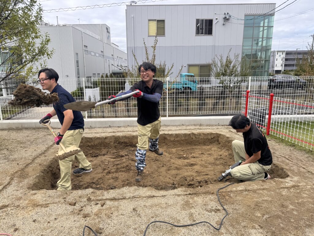 技術事業部の社員数名で交代しながら、 縦2m×横3m×深さ40cm の範囲を手作業で掘り進めました。