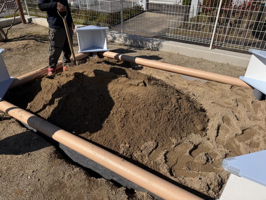 お砂場には、お砂場専用の砂を入れます。