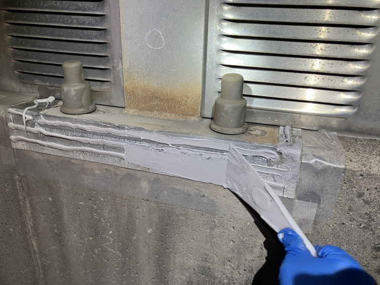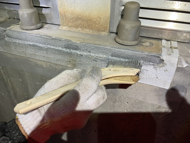 遮音壁支柱に新しいシーリング材を施工する前に、必要箇所へ塗布しました。