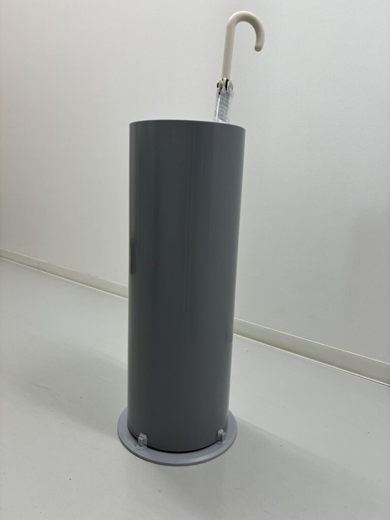 今回は、社内に眠っていた塩ビ(PVC)の廃材を活用して製作した「傘立て」についてご紹介します。