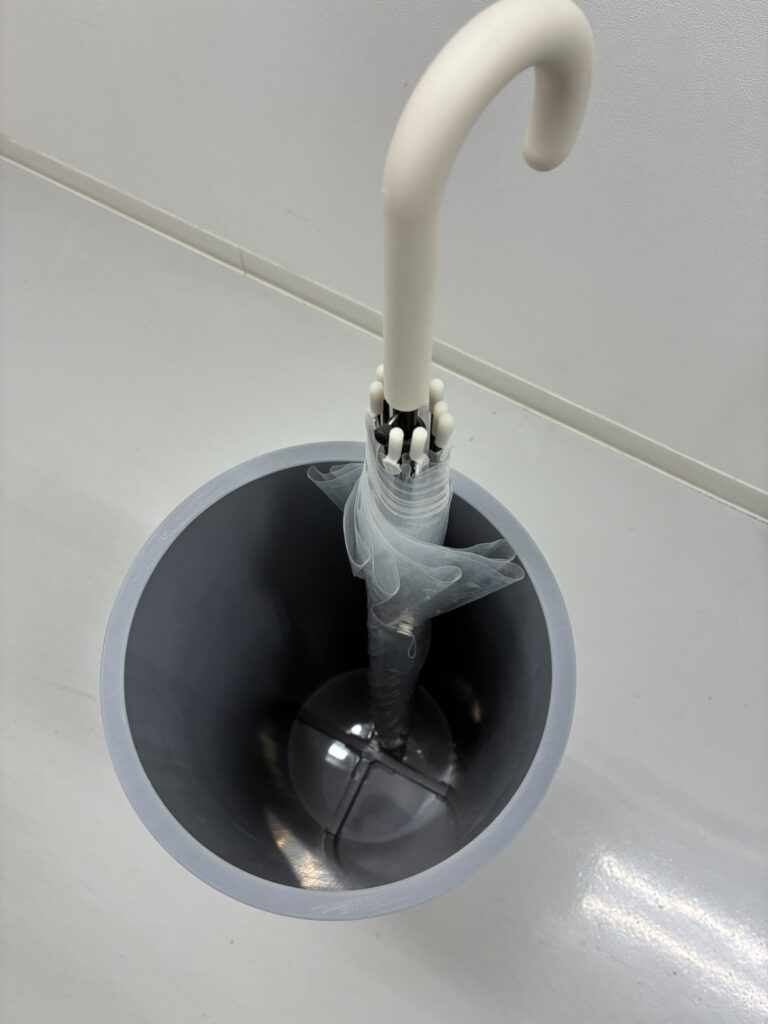 今回の製作のきっかけは、営業事業部からの「下に水が溜まりにくい傘立てがあれば便利」という声でした。